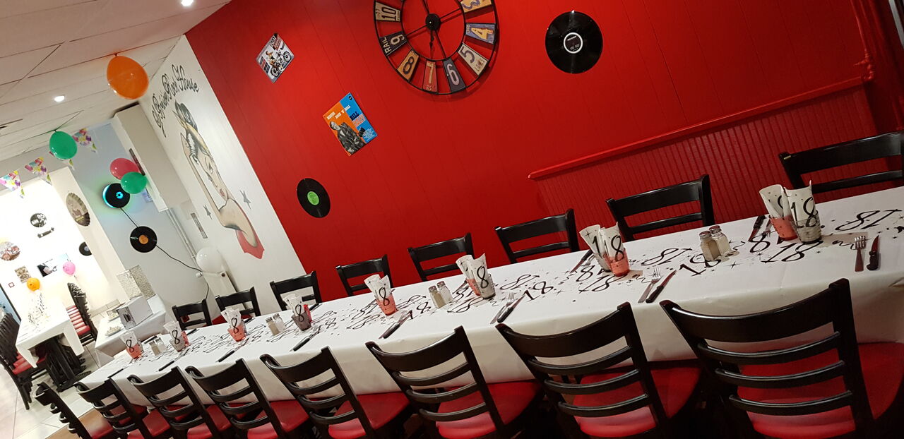 Bienvenue dans notre restaurant familial avec une décoration rock des années 50-60 où les produits frais et locaux sont mis à l'honneur.